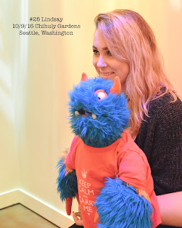 While we were looking at the glass on the ceiling, I met a really nice girl named Lindsay. She was from California and she wanted to be my friend. Though I have done a terrible job with my Hundred People Project, Lindsay made me want to get back to it because she asked to have her picture taken with me. That made me a happy little monster. Her mister friend took a picture of us and The Lady took one too. Now I have twenty-five people! I will make it to a hundred. I will.